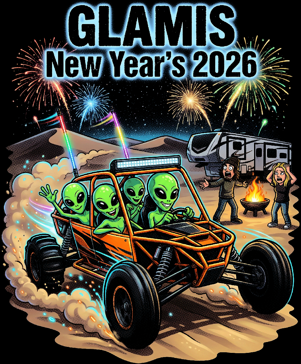 At Grithouse, we bring you apparel that’s more than just clothing—it’s an experience. The vivid graphic features otherworldly elements, taking inspiration from the thrill of Glamis dunes while adding a futuristic twist. From the extraterrestrial encounter to the energetic New Year celebration, every design detail weaves a story of fun, mystery, and community. Whether you’re a dune enthusiast or simply love eye-catching designs, this long sleeve is perfect for showing off your personality.