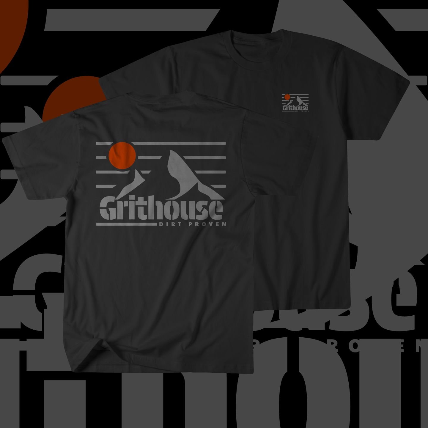 - Adventure-Inspired Graphic: The front of the t-shirt features a striking design with a mountain silhouette, a setting sun, and the text “GritHouse Dirt Proven,” symbolizing endurance, exploration, and the thrill of outdoor adventures.