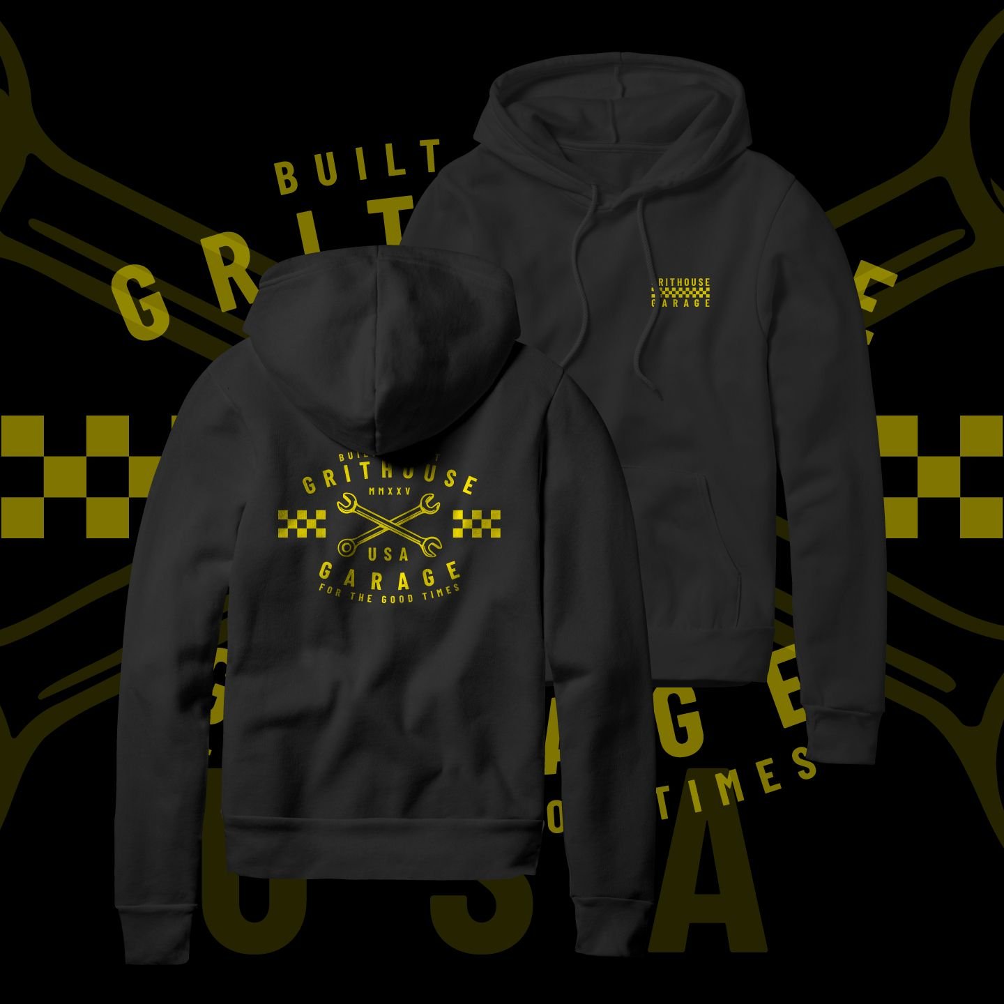 Rev up your style with the GritHouse Garage Hoodie – Built for the Good Times! This exclusive hoodie features a , . .