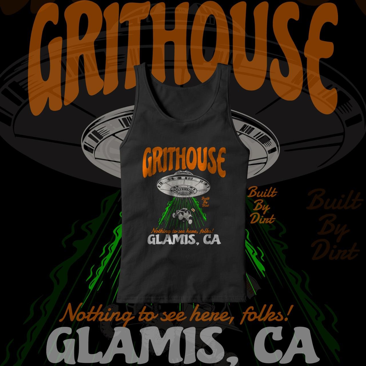 • Unique UFO Graphic: The front of the tank top showcases a , accompanied by the text “GritHouse,” “Nothing to see here, folks!,” and “Glamis, CA,” celebrating the legendary stories of the area.