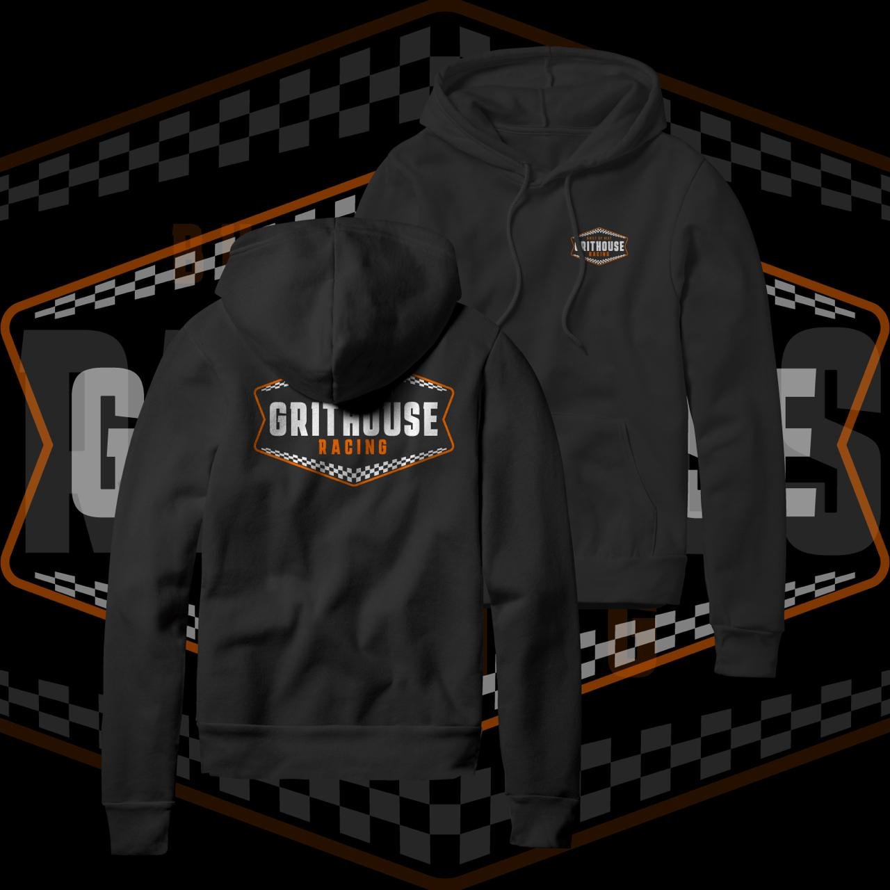 - Bold Racing Logo: The back of the hoodie showcases a with a checkered flag pattern and the words “GritHouse Racing,” symbolizing speed, power, and a passion for performance.