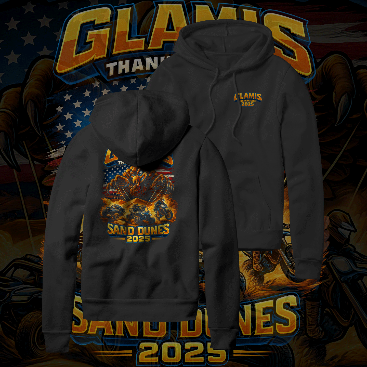 • Bold โ€œGLAMIS THANKSGIVING SAND DUNES 2025โ€ artwork with turkey and off-road rigs